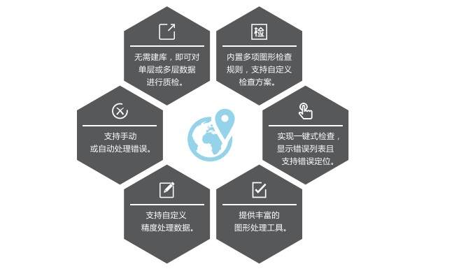 KQGIS Desktop支持高效的數據質(zhì)量檢查與批量處理,具備完善的數據檢查方案,支持數據錯誤的手工及批量處理,工作效率高。