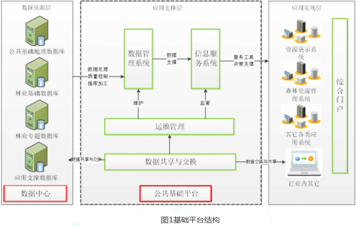 信息服務(wù)子系統基于平臺中所有數據和功能,以接口的形式對外提供各類(lèi)符合OGC標準的服務(wù),為林業(yè)各部門(mén)搭建業(yè)務(wù)系統提供支撐。